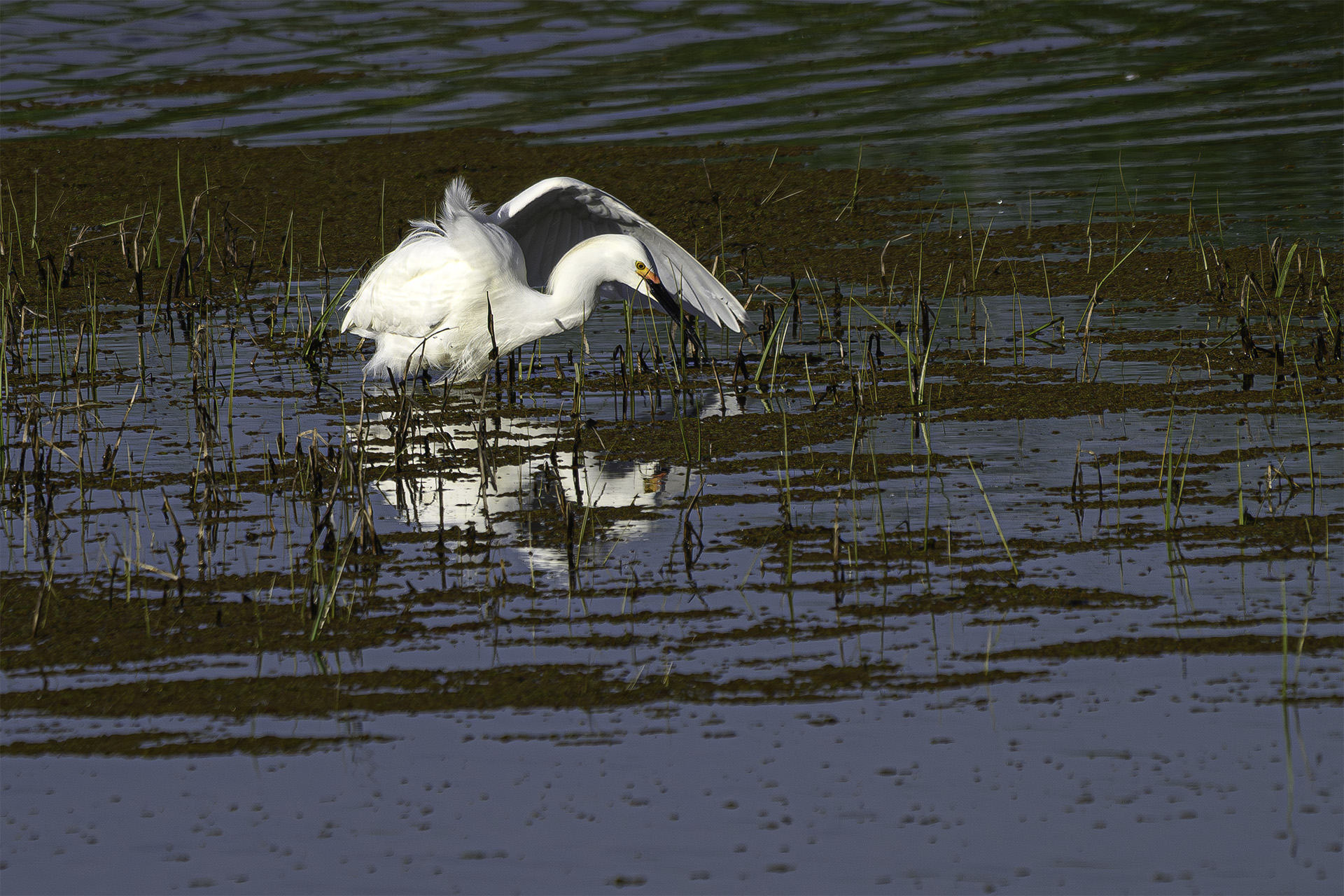 The song of a Red-winged Blackbird is a lovely, lilting song that echoes across the marshes as the males let their presence be known both to rivals and to females. Probably not the Mother Goose “song of sixpence” about Blackbirds baked in a pie but it is a blackbird after all. I particularly liked this image because the background is far enough away from the subject that a telephoto lens creates a plain, soft, and dreamy background color that has no distractions so the subject is perfectly presented on its stage.