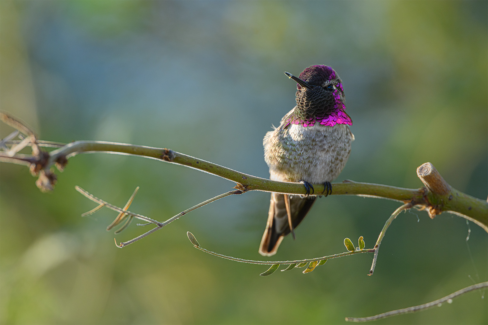 The tiny Costa’s Hummingbird was quite cooperative a few weeks ago in Arizona. He was in a shrubby area with lots of obstructions so I took my camera off the tripod and walked a few feet to get a better view. The Nikkor Z600PF is lightweight and hand-holding it lets me move easily to follow a bird without the burden of a tripod. I was able to track him and when he perched, the freedom of hand-holding let me move easily to avoid obstructions.
