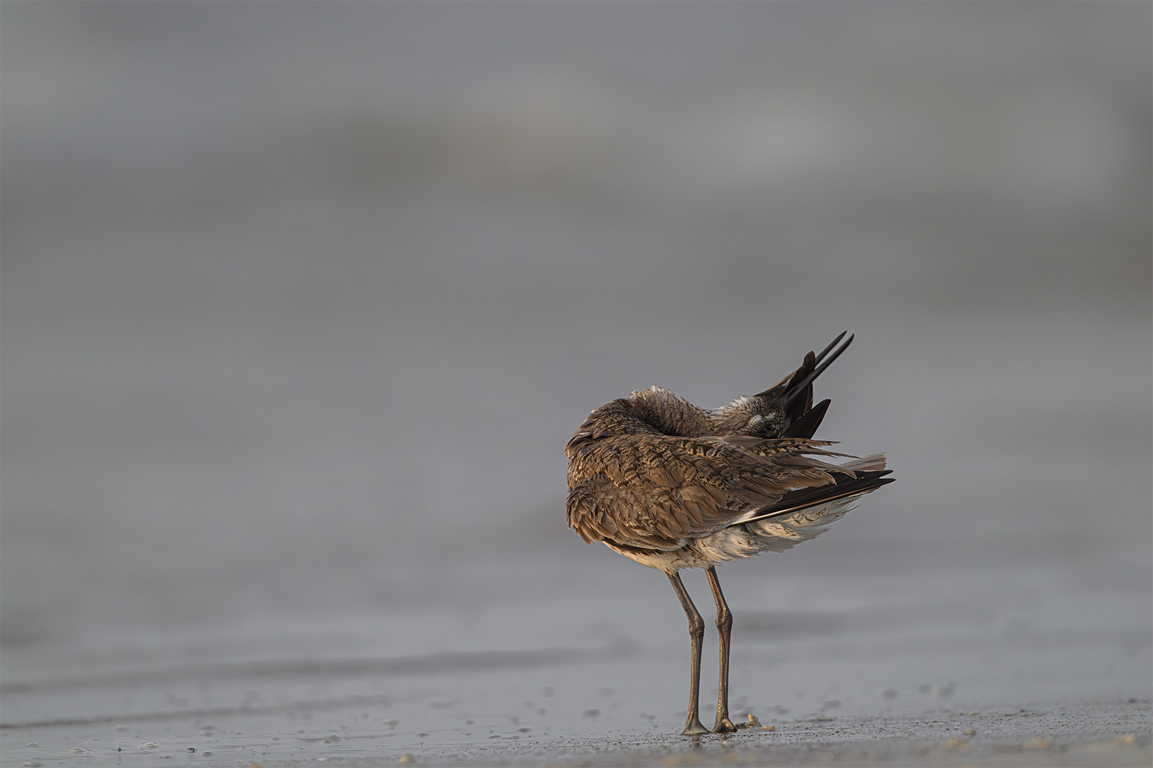 To me, it’s ironic that my first ever photographs of a Sanderling in flight were taken just a few miles down the beach from where the Wright Brothers made their first flight in Kitty Hawk, North Carolina more than 120 years ago. While their first flight lasted 12 seconds, the series of images I took that recorded my first flight lasted barely a second. A Sanderling I had been photographing as it approached me from the surf, suddenly launched into the air and flew over my head. It was a great start to a week of beach panning on the Outerbanks.