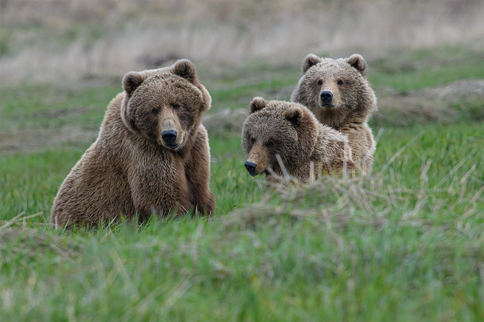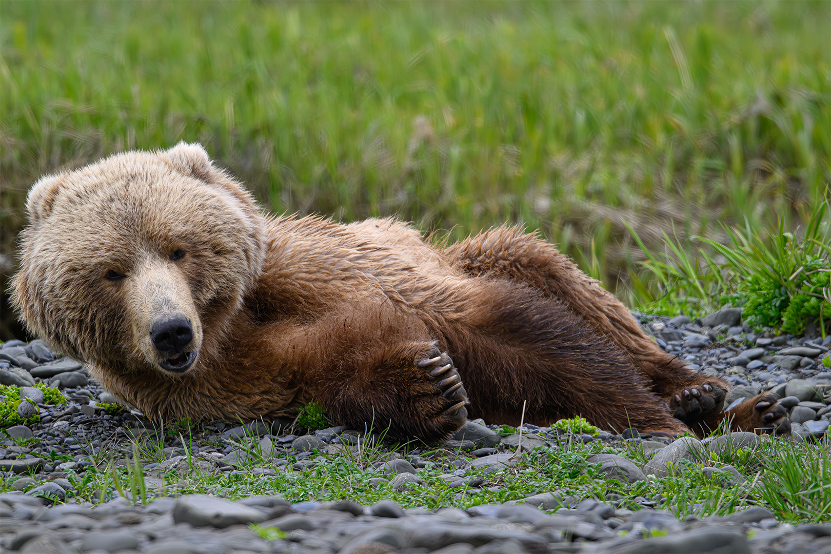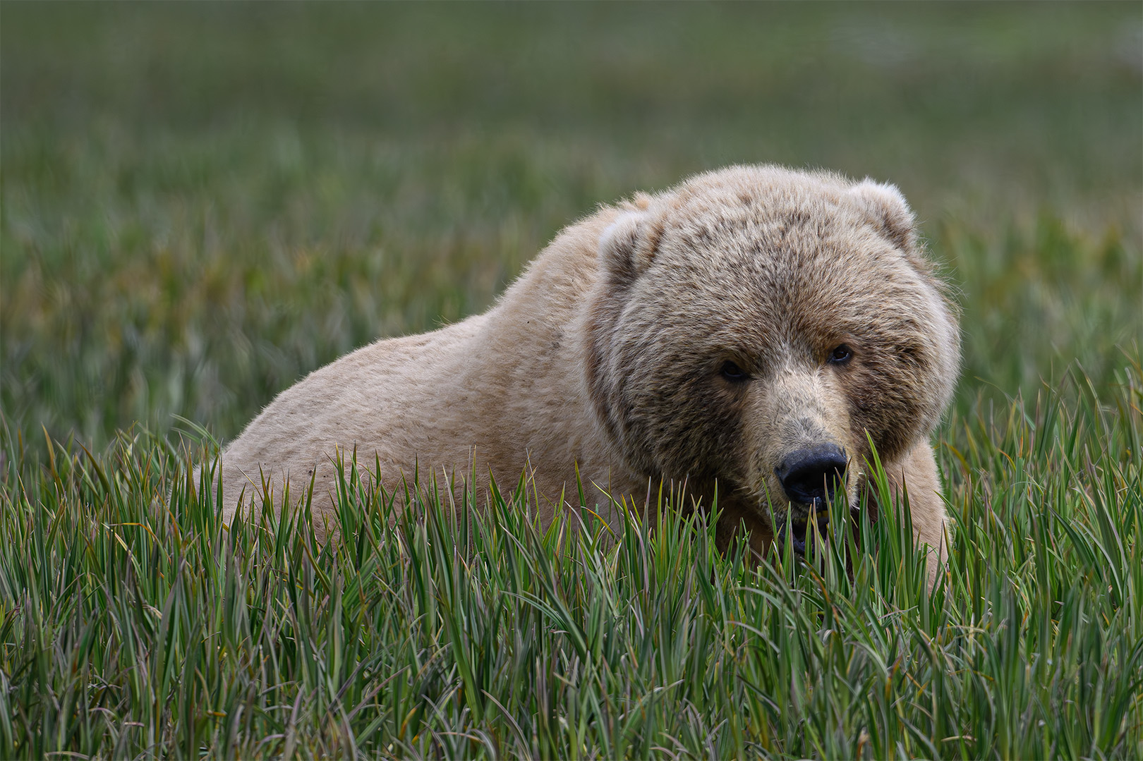 She instantly reminded me of a Teddy Bear with that adorable round face, inquiring eyes, and fuzzy ears. I just love these Kodiak Brown Bears and really enjoyed my time with them in their world. We got to Kodiak just as the nutritious grasses on which they graze were beginning to flourish. Every day, we could see that the grass was quickly growing taller before our eyes. In just a few short weeks, the grass will be too tall to go onto the flats to see the bears because it will completely hide them from view, making it too dangerous for us or the bears. I’m so glad that we got there at just the right time to see these adorable Teddy Bears in their natural habitat.