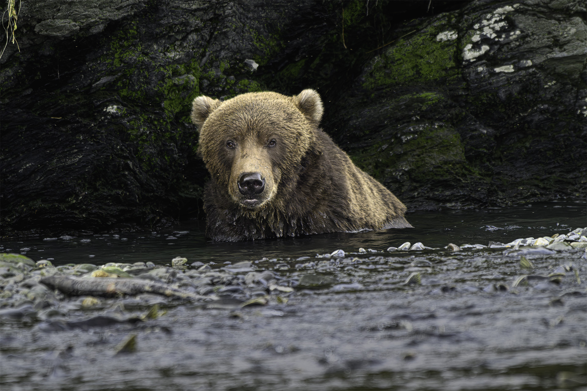 The Kodiak Brown Bears didn’t have to try too hard to snatch up a fish in the shallow waters as the Pink Salmon made their way up stream to spawn. The gulls hung around the edges of the river, playing a sort of waiting game, biding their time as they waited for leftovers from the bears. The gulls didn’t wait only for tidbits of salmon dropped by the bears. They sought out places where the salmon laid their eggs, dipping their heads into the water and gulping down the red pearls when they could.