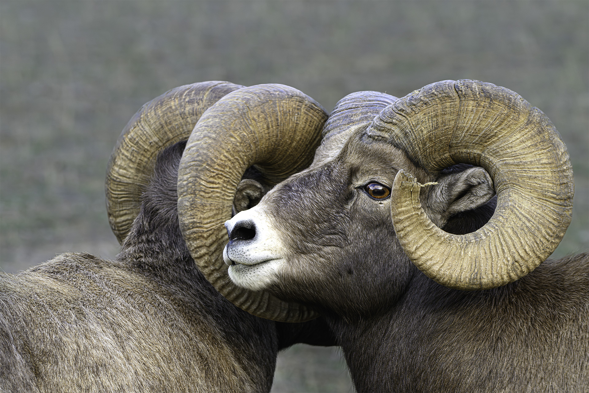 Rocky Mountain Bighorn Sheep! It was mid afternoon yesterday, our first day back in Yellowstone, and there they were, a huge herd of them grazing along the road. The herd seems to have grown since last year. There were lots of rams, some majestic and seemingly above it all and some being their FOMO selves, racing to join the scrum of rams already gathered together, seemingly fearful that they were missing something. They nudged each other and nuzzled each other and stood so close together it appeared they were sharing secrets. It wasn’t long before they moved so near to us, that with our long lenses, all we could fit in the viewfinder was their heads. Avoiding cutting off horns was the challenge of the afternoon. What fun! We’re looking forward to seeing them again over the coming week.