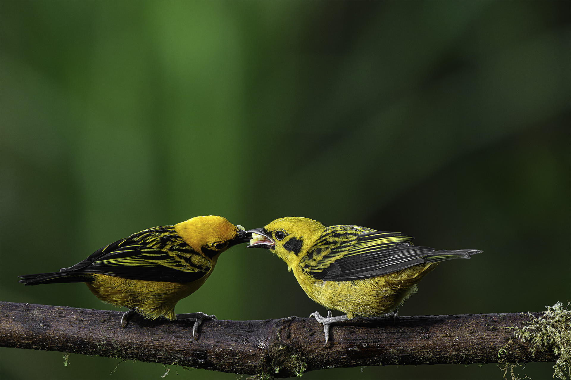 Cat Stevens once sang, “Oh, baby, baby, it’s a wild world.” More than fifty years later, it’s still a wild world. It’s been wild here in Ecuador with all of the amazing birds we’ve seen so far. Cat’s lyrics came to mind the other day when we saw a fledgling Golden Tanager begging for food from its parent, who obliged, feeding it some banana that was gleaned from one of the feeding stations located in areas around Sachamatia Lodge. Although the young bird, on the right, looks almost identical to its parent, to me its exaggerated “Walt Disney beak” was the giveaway. This young bird will face the wild world soon enough, but for now, it is being cared for by a caring parent.