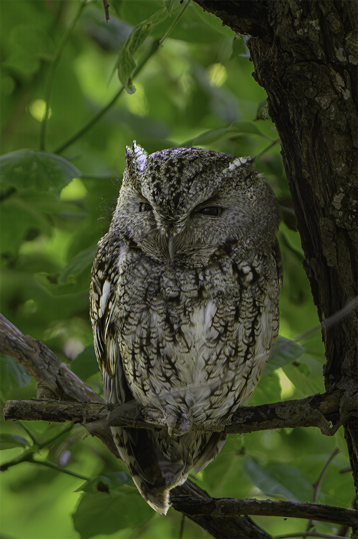 I’m back at Magee Marsh, a wildlife preserve adjacent to Lake Erie in Ohio. It’s a stopover for migrating birds, especially warblers, as they head to the Arctic to breed and stop to refuel before crossing the lake. But there are lots more birds than just warblers here. 2023 was my last visit here and on our last day, we found an Eastern Screech Owl nestled in the cavity of a dead tree, almost invisible as its feathers blended perfectly with the weathered bark of the dead tree. We had passed it, unnoticed, dozens of times during our four day visit then. Fast forward two years and on our first day, we discovered an Eastern Screech Owl taking an afternoon siesta before it began its nighttime search for food. What a great way to start our visit here, with the same bird species we ended it with two years ago.