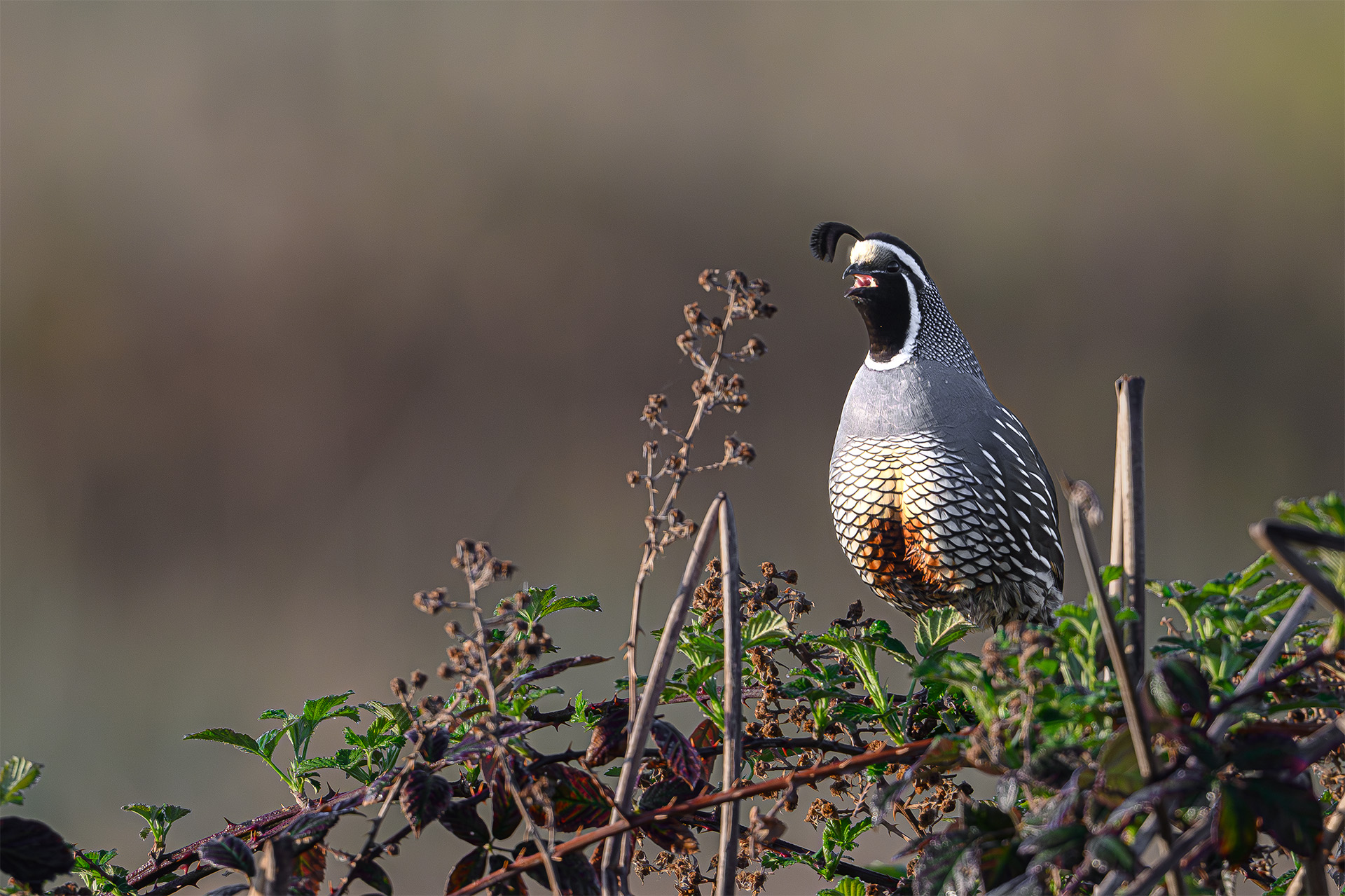 A few years ago, after photographing a number of birds designated as state birds around the country, I decided I would try to photograph each state bird within its respective state. A couple of days ago, I finally photographed California’s state bird, the California Quail, practically in my own backyard. And, it’s about time! There are quite a few California Quail along the Ferrari Pond Trail near my home so I was happy when this trio, two males and a female, crossed our path and posed for a moment in the grasses along the side of the trail. In the second shot, a male sings from a high perch to attract a female or maybe just to assert his dominance. By the way, I have abandoned my fanciful quest to find each state’s bird within that state’s boundaries. Because many states have designated the same birds to represent their state, I have photographed 44 state birds plus the District of Columbia but only four birds in their respective states: the Nene in Hawaii, the Cactus Wren in Arizona, the Northern Mockingbird in Texas, and now the California Quail in California. I have upcoming trips to South Dakota (the Ring-necked Pheasant) and Delaware (the Blue Hen Chicken) so maybe I’ll get lucky and find those birds while I’m there. If I do, I’ll have just four to go: Alabama’s Yellowhammer; Colorado’s Lark Bunting; Georgia’s Brown Thrasher; and South Carolina’s Carolina Wren.